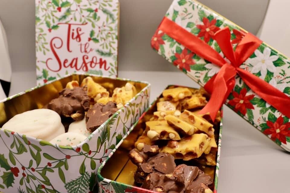 Order the classic treats - peanut brittle, chocolate peanut clusters, and chocolate-covered crackers with peanut butter.